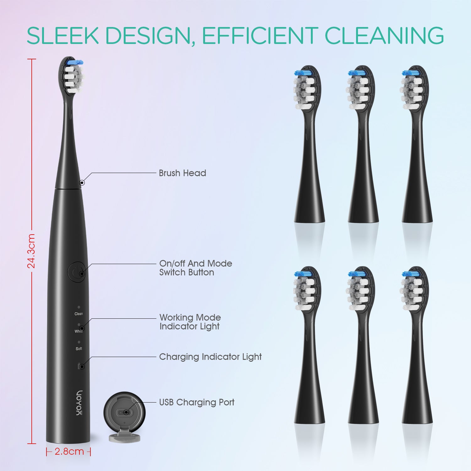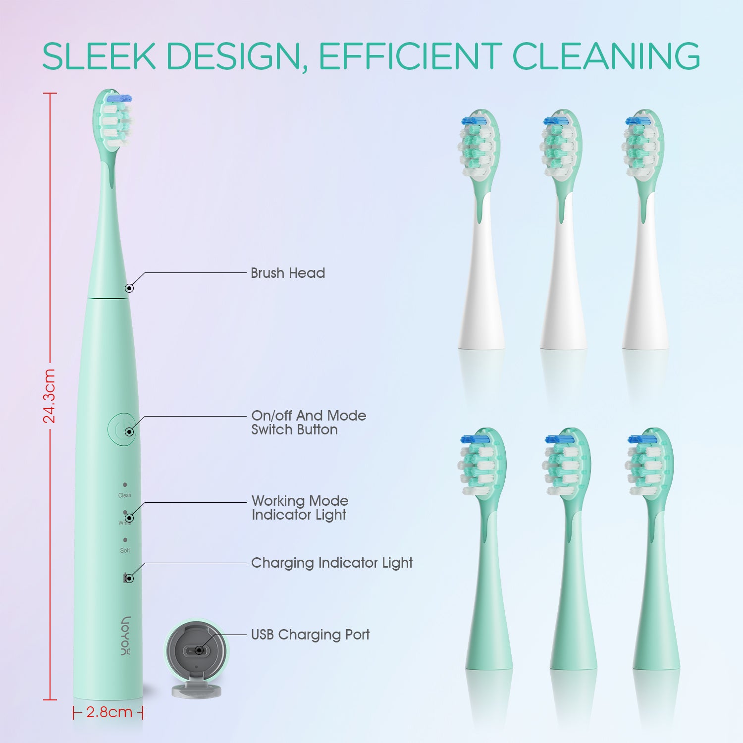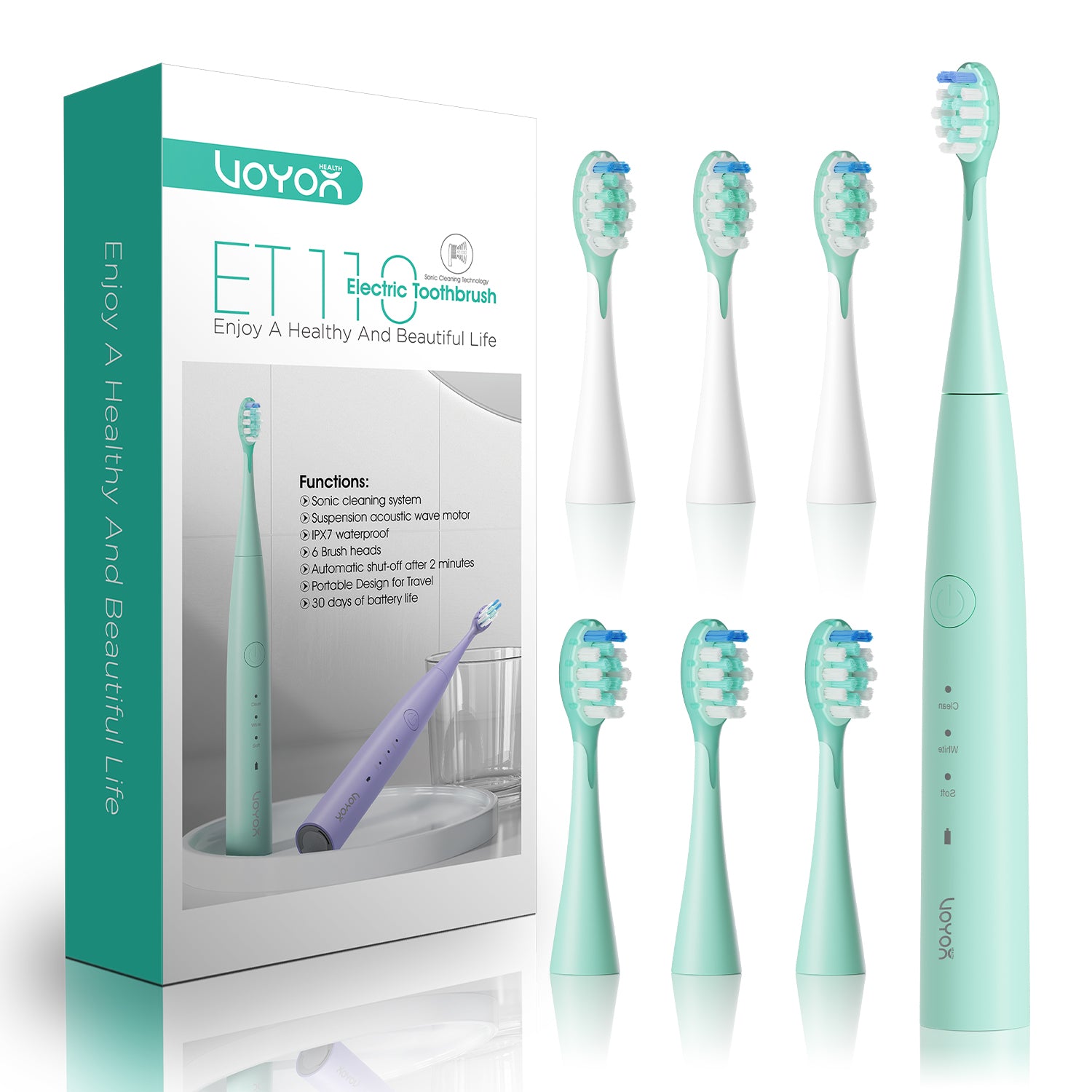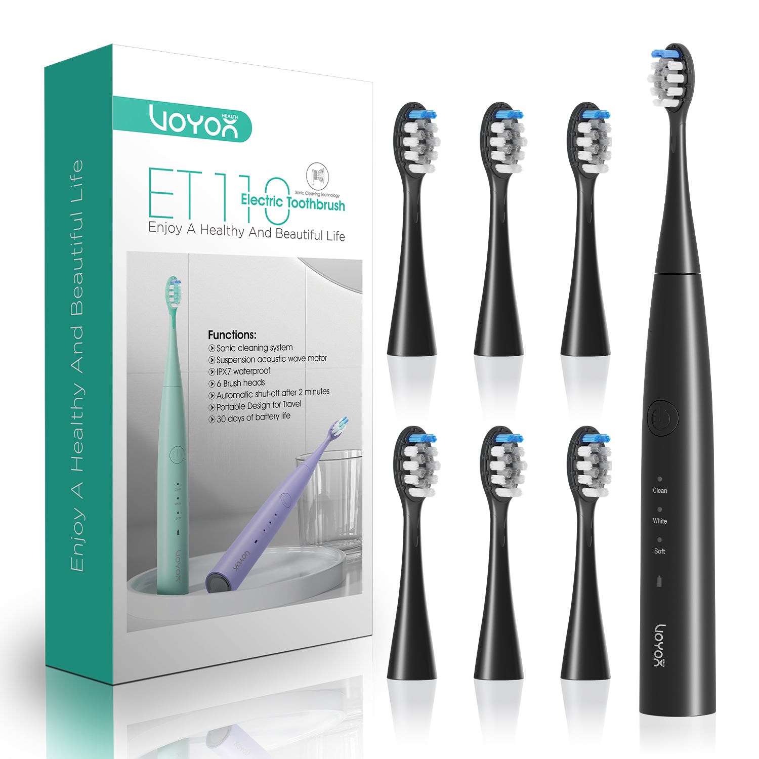 VOYOR-HEALTH Portable Electric Toothbrush with 6 Brush Heads & Smart Timer ET110