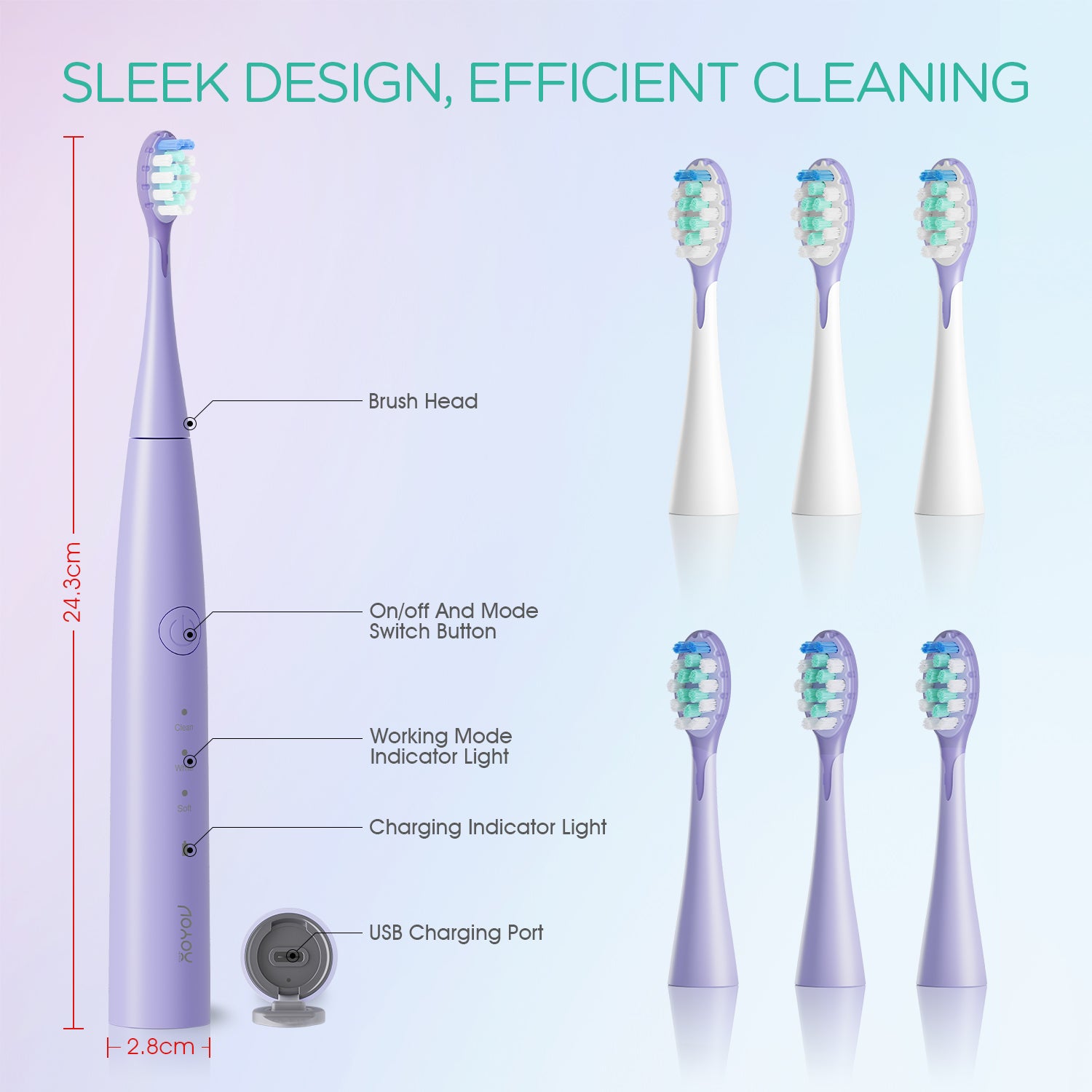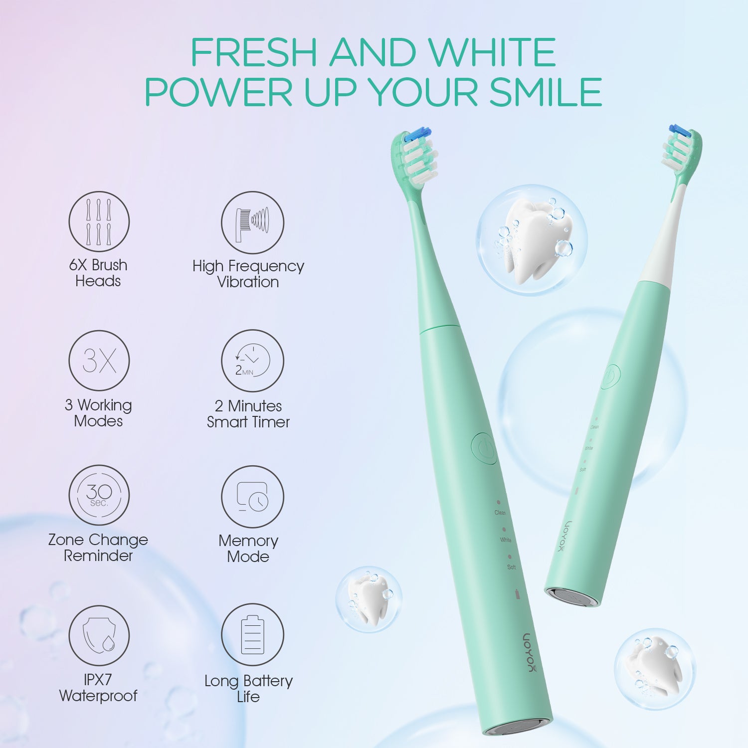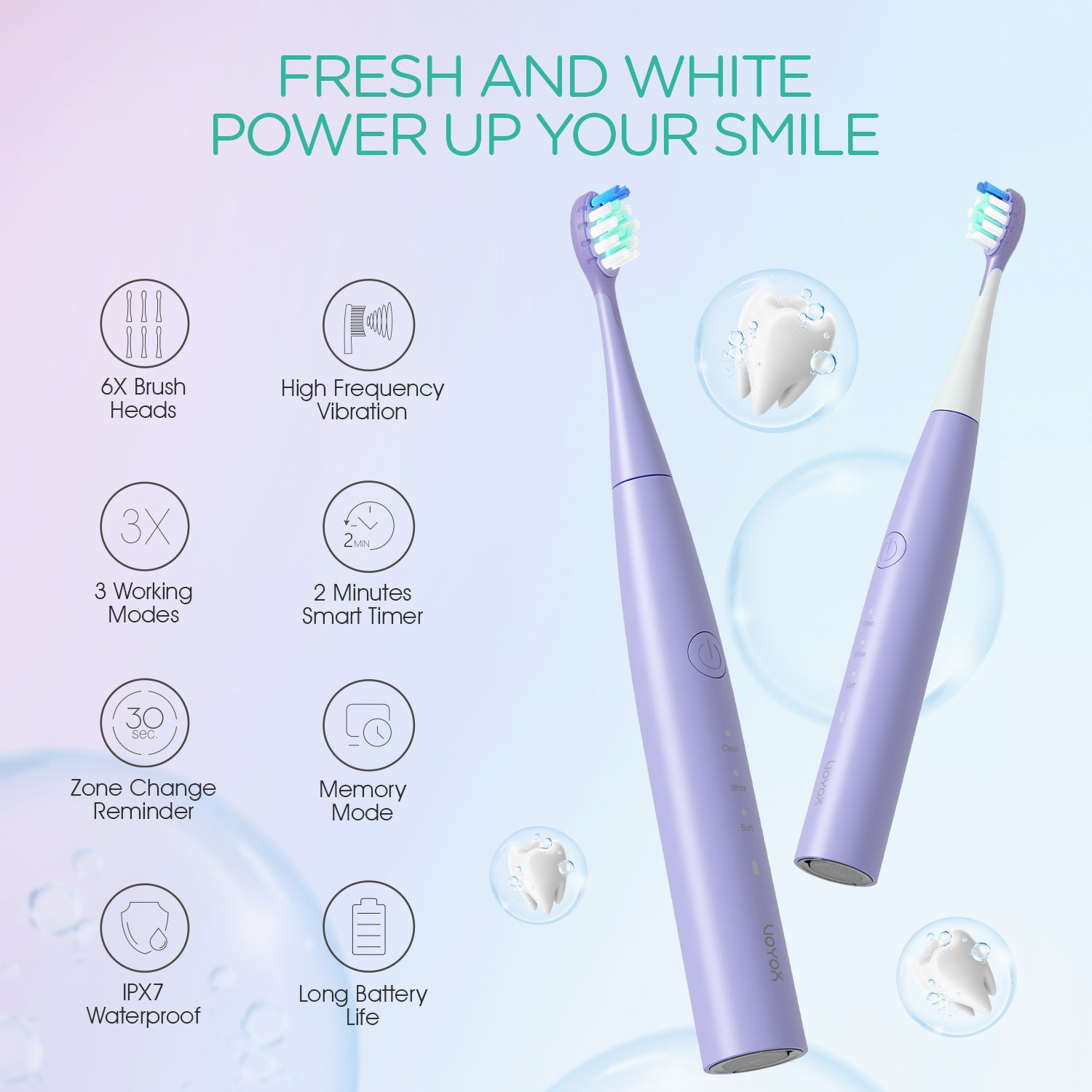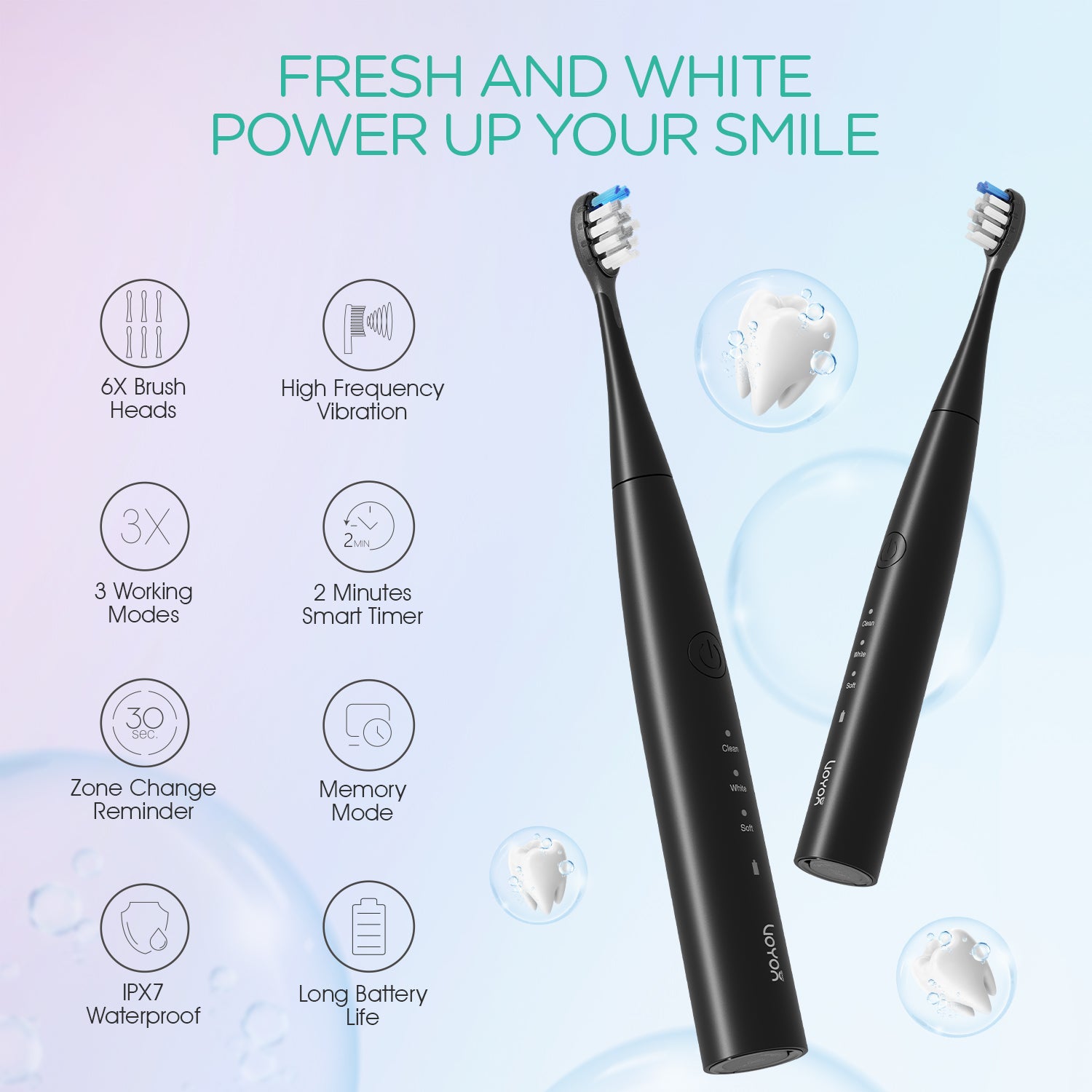 VOYOR-HEALTH Portable Electric Toothbrush with 6 Brush Heads & Smart Timer ET110