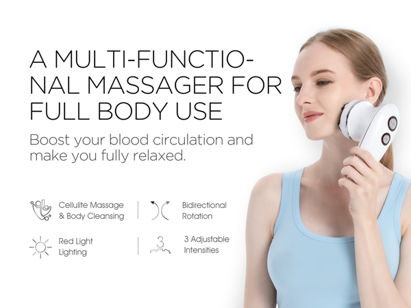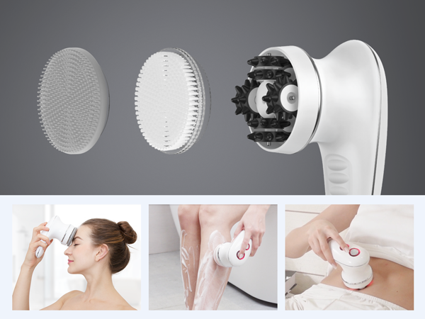 3 Multifunctional heads start your face/body massage & washing to free your hands thoroughly. skin.